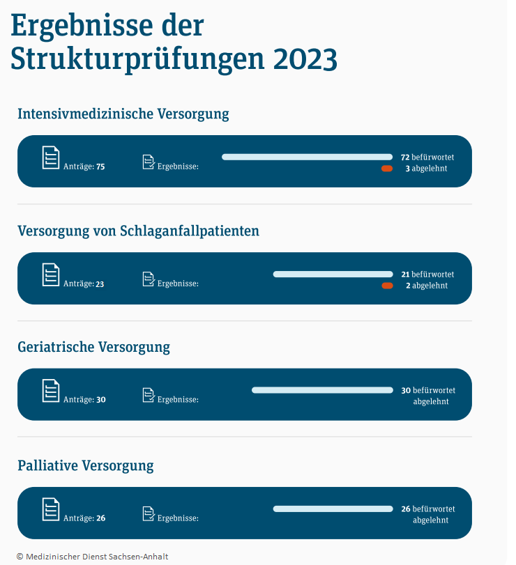 Die Voraussetzungen für komplexe Behandlungen sind in Sachsen-Anhalts Krankenhäusern grundsätzlich gut, so das Ergebnis der geprüften Vorgaben durch den Medizinischen Dienst.