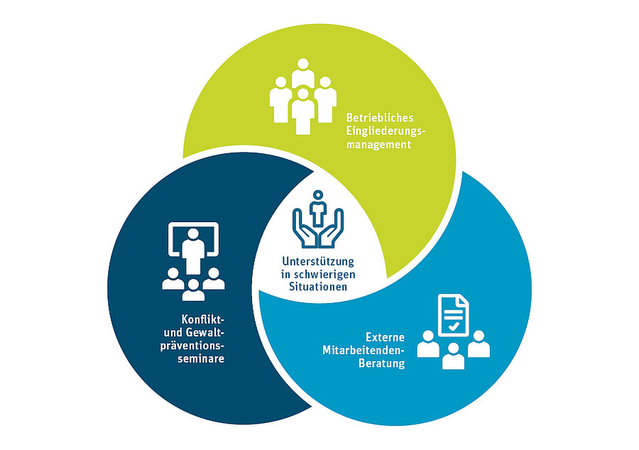 In herausfordernden Lebens- und Arbeitssituationen bieten wir unseren Mitarbeiterinnen und Mitarbeitern zusätzlich gezielte Unterstützung: